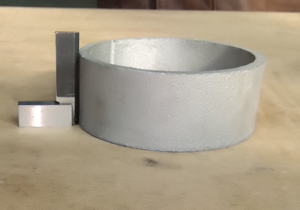 В результате испытаний оборудования ОАО «БЕЛНИИЛИТ», разработанного технологического процесса получения форм для отливок маслота без литейных уклонов, рис. 2, получены отливки маслот с размерами: диаметр 110 мм, высота 32 мм, толщина стенки 6,5 мм, рис. 2. Экспериментами установлено, что оптимальная высота маслот при этом технологическом процессе должна составлять 32 – 35 мм. При высоте более 35 мм изменяется структура металла по высоте отливки, что может привести к разным по качеству поршневым кольцам после механической обработки.