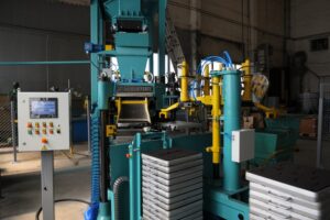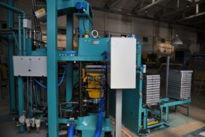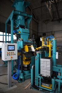 Конструкция системы управления формовочной машиной позволяет адаптировать процесс уплотнения и засыпки под различные свойства сырых песчано-глинистых формовочных смесей применяемые в литейном производстве.