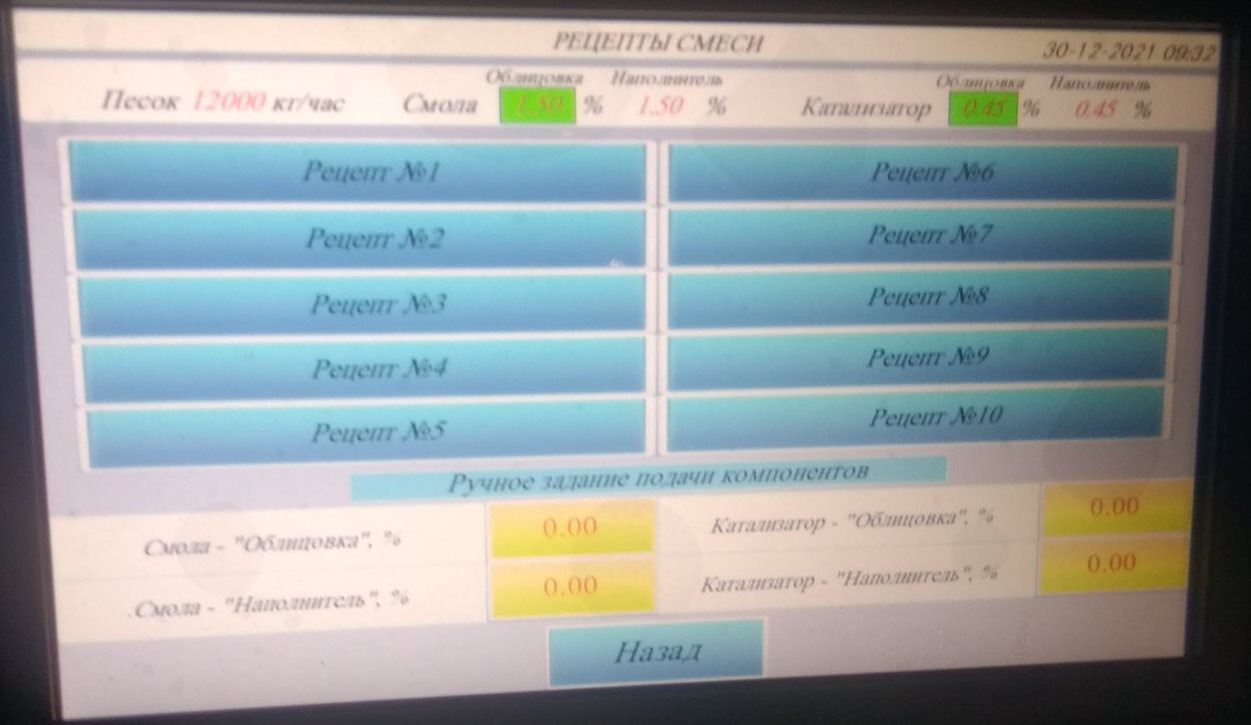 Основное назначение высокоскоростного одношнекового смесителя – приготовление стержневых маложивучих холоднотвердеющих смесей, используемых в производстве стержней и форм по технологиям No-bake (ХТС). В базовой комплектации смеситель имеет три контура подачи и дозирования жидких связующих компонентов, что обеспечивает возможность его применения для приготовления большинства используемых в современном литейном производстве типов песчано-смоляных смесей на основе двухкомпонентных вяжущих систем «смола + отвердитель (быстрый-медленный», например, фурановых смесей кислотного отверждения, смесей технологии Альфа-сет и других.